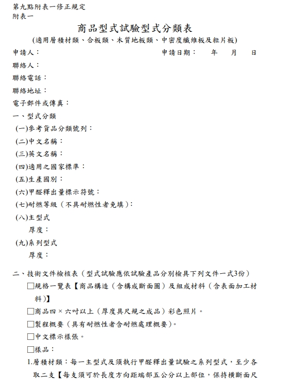 轉知:經濟部標準檢驗局修正「木製板材類商品檢驗作業規定」與「耐燃建材商品檢驗作業規定」部分規定及第10點附表FRP-02,並自即日生效
