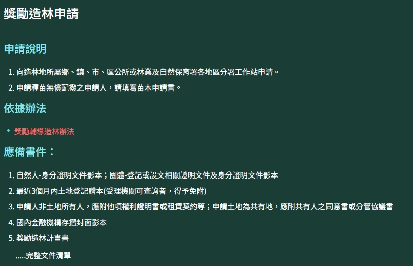 轉載:獎勵造林受理申請至4月30日!一起當森林的主人