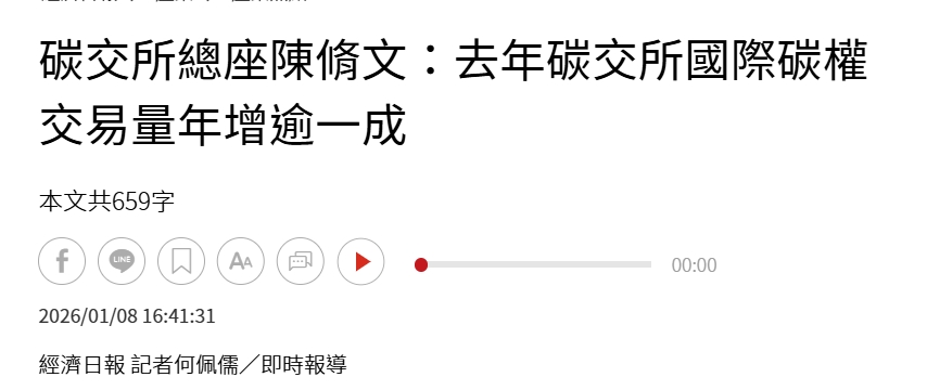 轉載:碳交所總座陳脩文:去年碳交所國際碳權交易量年增逾一成-經濟日報 何佩儒