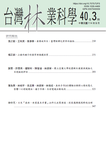 轉載:台灣林業科學第40卷第3期最新上線,歡迎點閱!-農業部林業試驗所2025 - 11 - 17