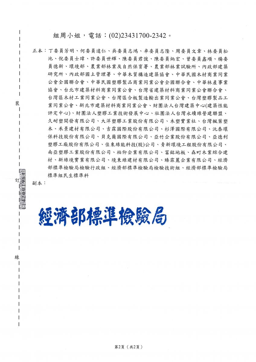 經濟部標檢局編擬之CNS草-制1140271 木材-塑複合材料與塑膠仿木之甲板、階梯踏板、欄杆及扶手的性能評級」共1種國家標準草案,惠提意見。