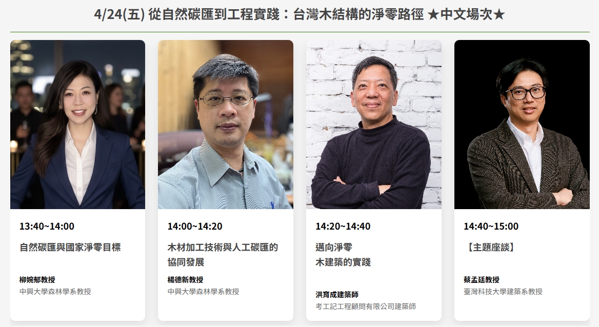 展期亮點活動 「木結構永續論壇」 將於 4/24 在 WOOD TAIWAN 主舞台舉行。