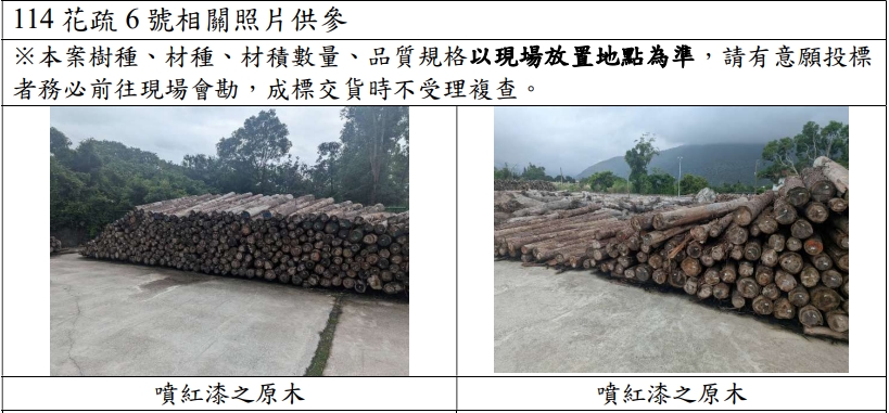 11月26日辦理「114花疏6號」柳杉(FSC驗證,FSC® C185501)國有林產物標售(第1次公告)