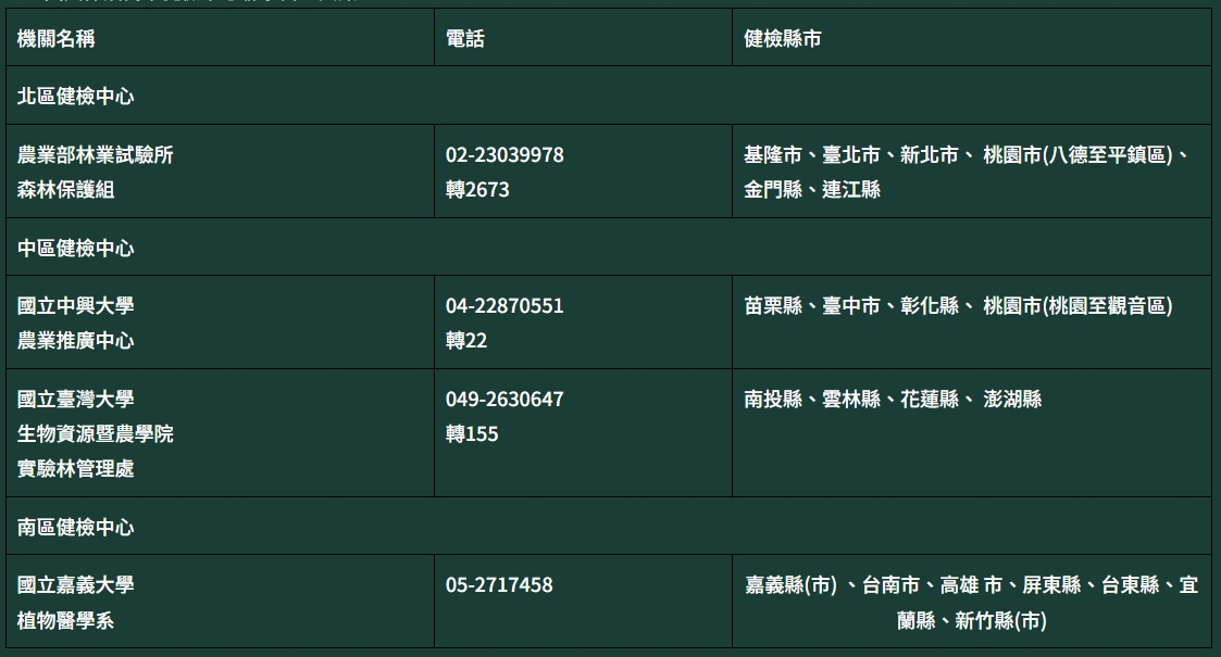 ※全國受保護樹木健檢中心聯繫窗口資訊